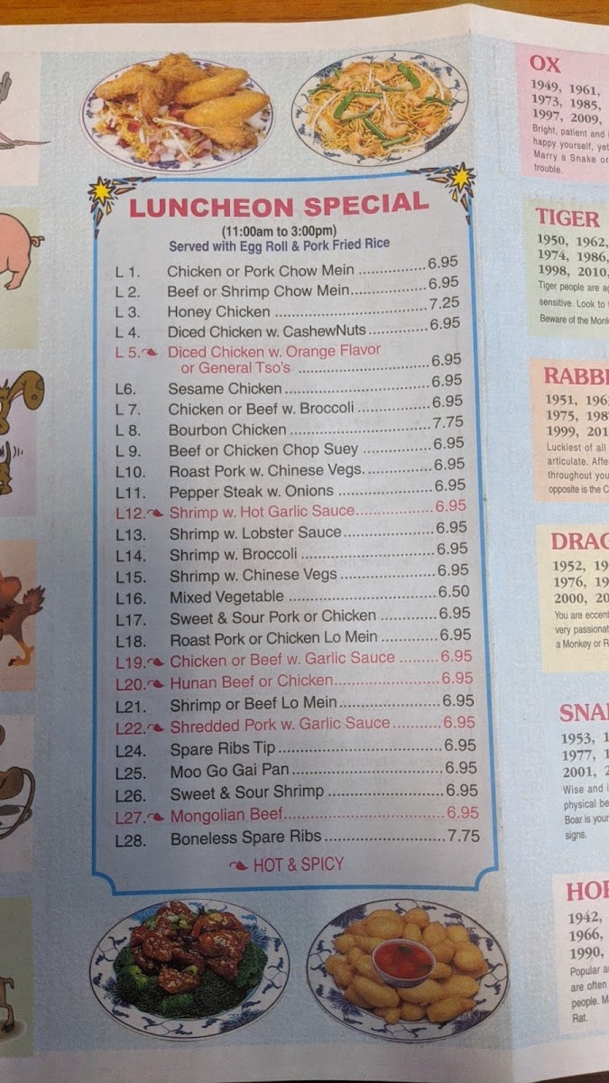 Guests will find well-loved options such as Orange Chicken, General TSO's Chicken, and Beef or Shrimp Chow Mein, which are popular choices for midday breaks or easy evening meals. The lunch specials serve up generous portions at reasonable prices, often accompanied by rice and an egg roll, fitting the modest and approachable setting of the restaurant.