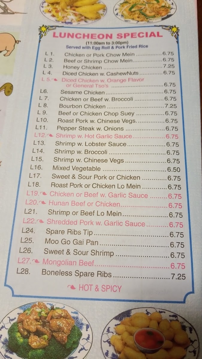 The menu at Hong Kong Chinese Restaurant offers a straightforward and unfussy selection of classic Chinese dishes, ideal for casual lunches or relaxed dinners. This is a place where familiar flavors meet simple, comforting presentations—perfect for those seeking a quick, satisfying meal without fuss.